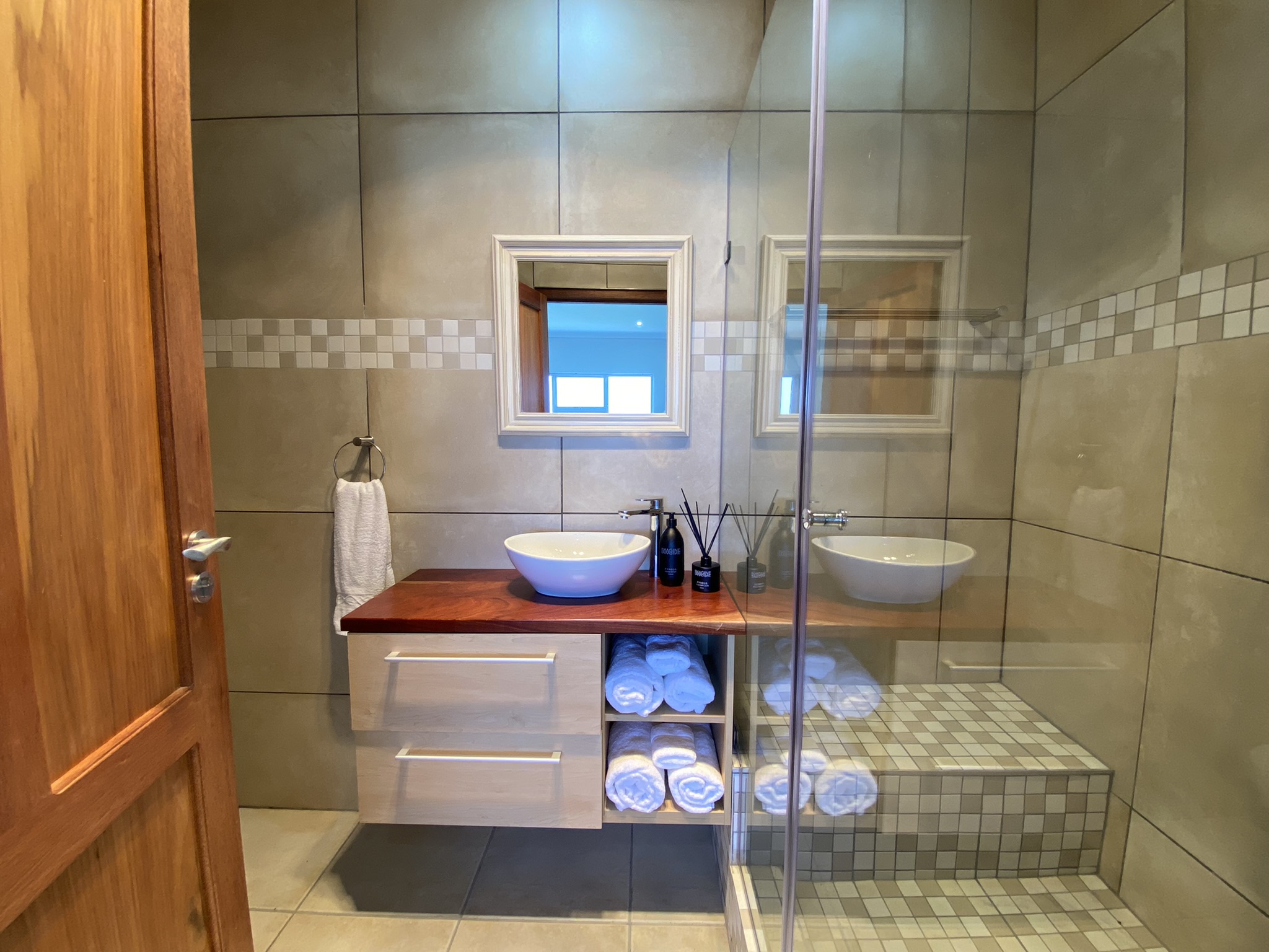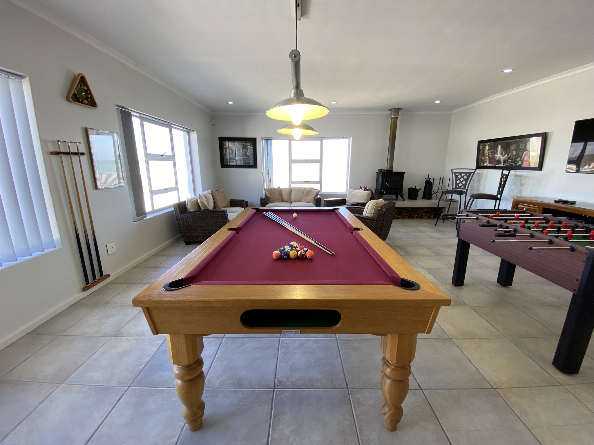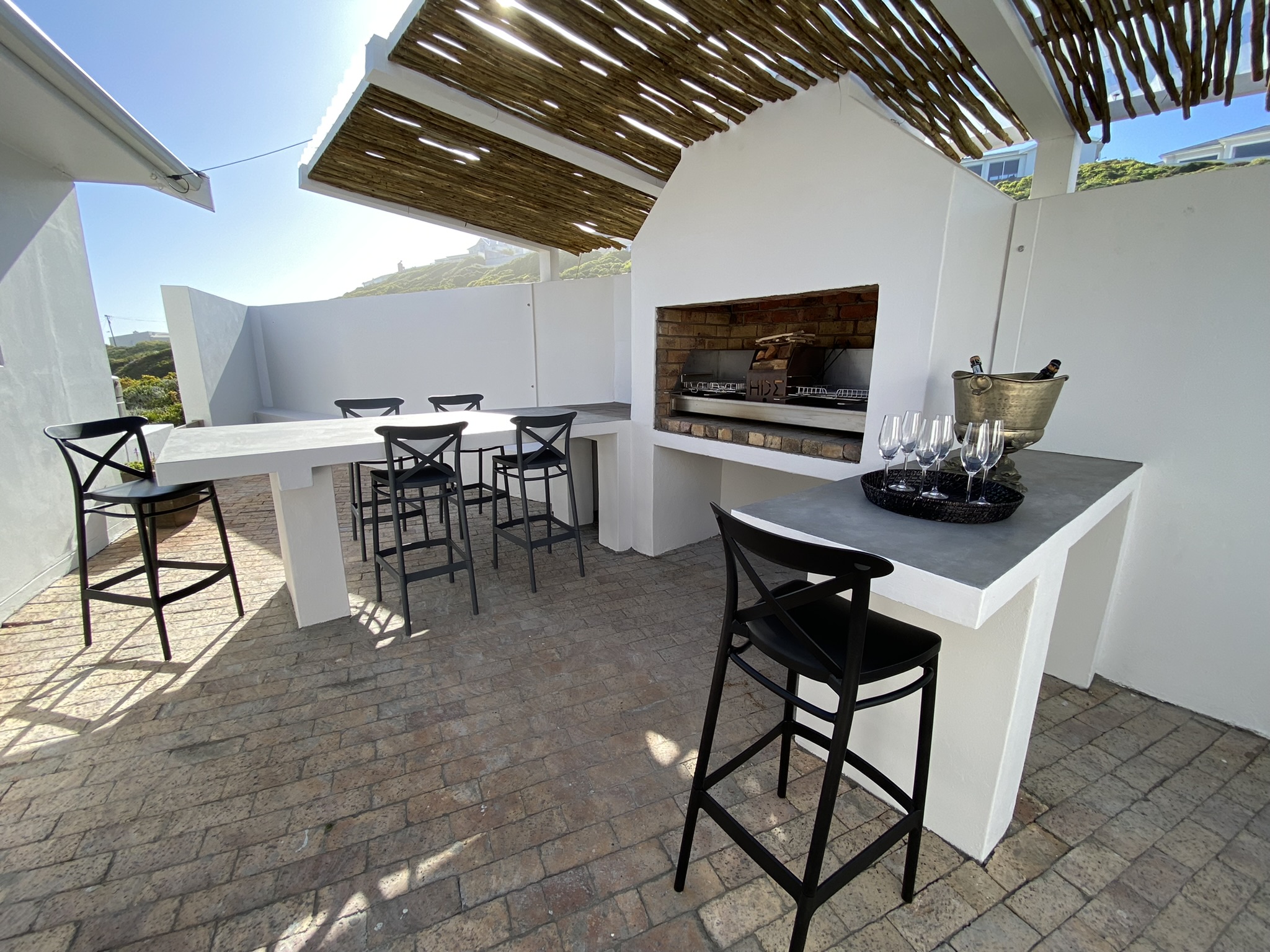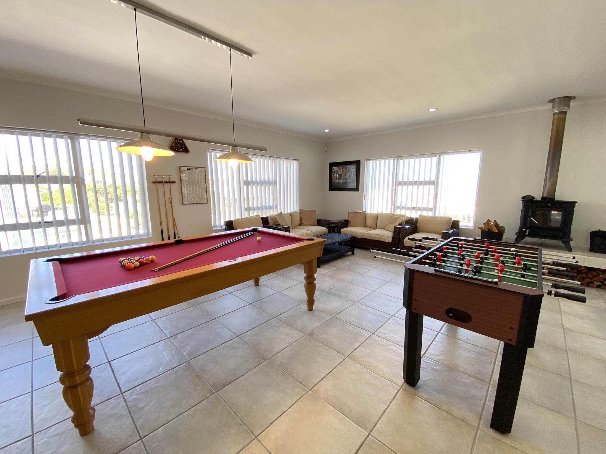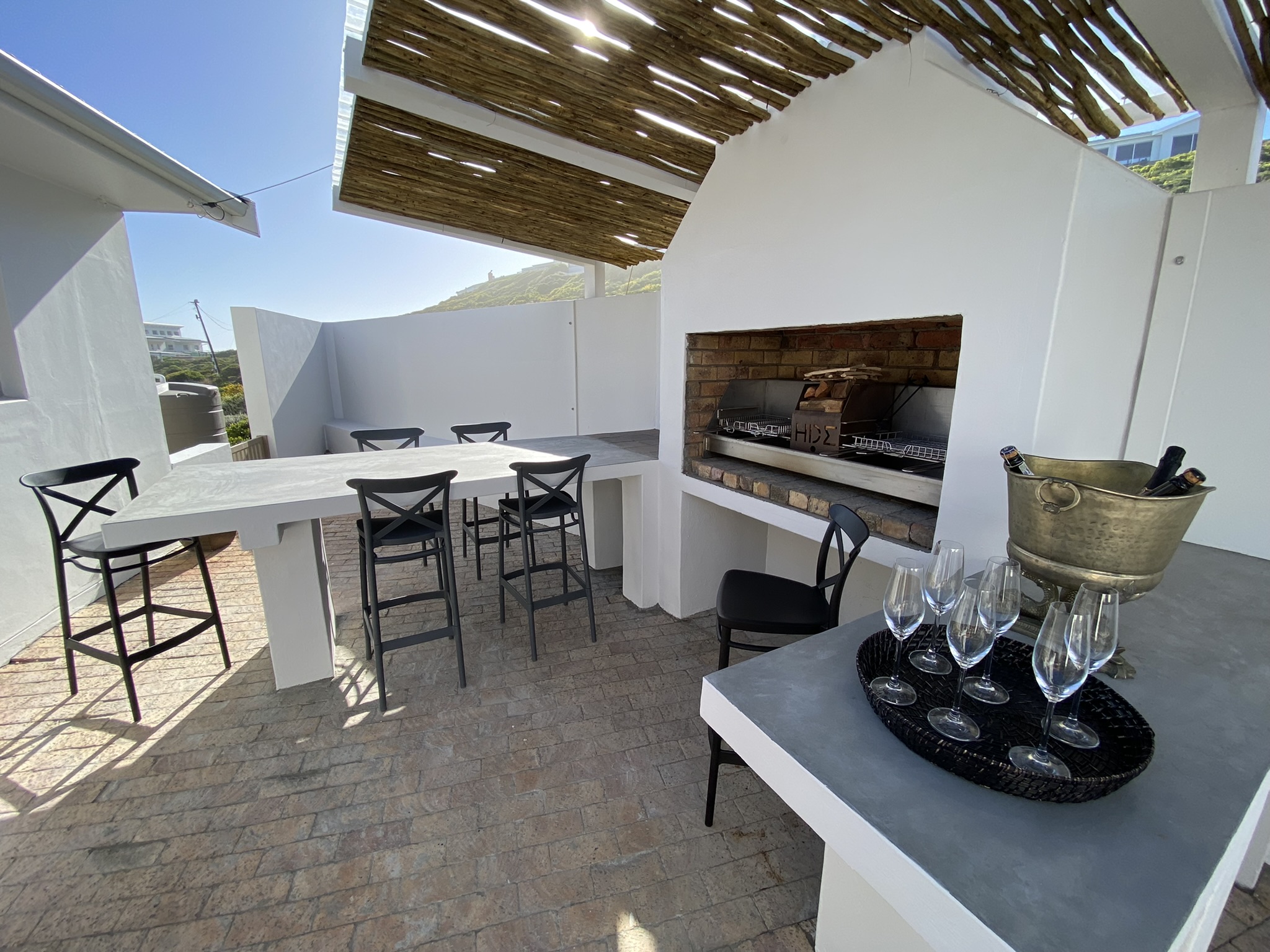 The property is spacious and luxurious with unlimited Wi-Fi, a 3 battery solar system to avoid power failures and free parking. Dedicated office for remote working that includes a small book library. The modern bedrooms are all sea facing. Two of the rooms share a balcony. Three of the rooms have en-suite bathrooms. Two of the bathrooms have bidets. Fourth bathroom includes a bath tub. 2 King size and 2 Queen size beds. Hairdryers, towels, beach towels and bedding included. Lounge also has a sea facing balcony. 10 seater custom dining table. Fully fitted chef’s kitchen, scullery and laundry with 2 fridge/freezers, ice maker, Nespresso, gas stove, oven, dishwasher, tumble dryer. Games room with a fireplace, flat-screen TV, full DSTV bouquet, pool table, soccer table, dart board. Outside is a double barbeque grill with ember maker under a lattice pergola with a built in dining table.